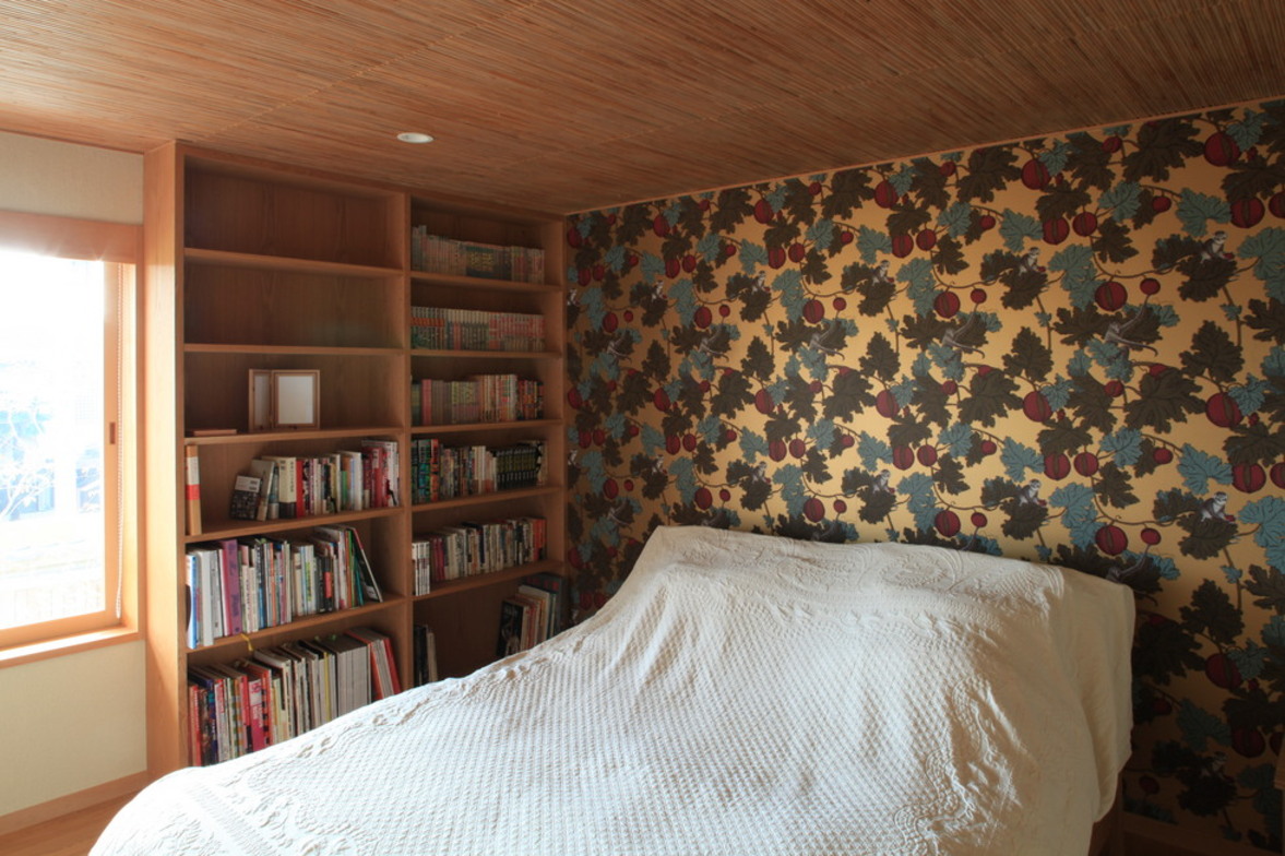 2階ゲストルーム。アクセントがある壁紙とした