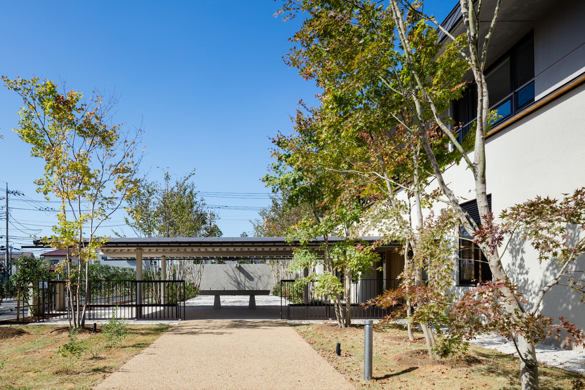 アプローチをさらに進むとエントランスキャノピーが見えてくる 撮影:小川重雄