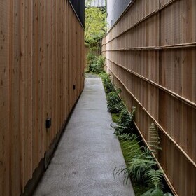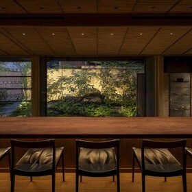 京都市の中心部にある築約100年の民家を中華料理の店に改修したもの。既存建物は細い露地の奥にあり、町中には珍しく15坪ほどの庭を有していたため、その露地と庭を造り替え、庭を見ながら食事ができるカウンター席の店とした。