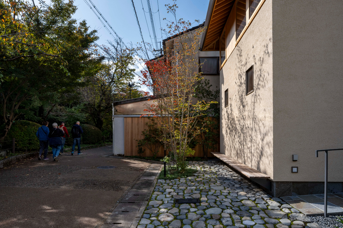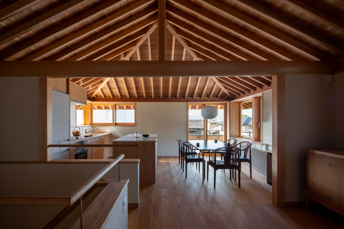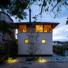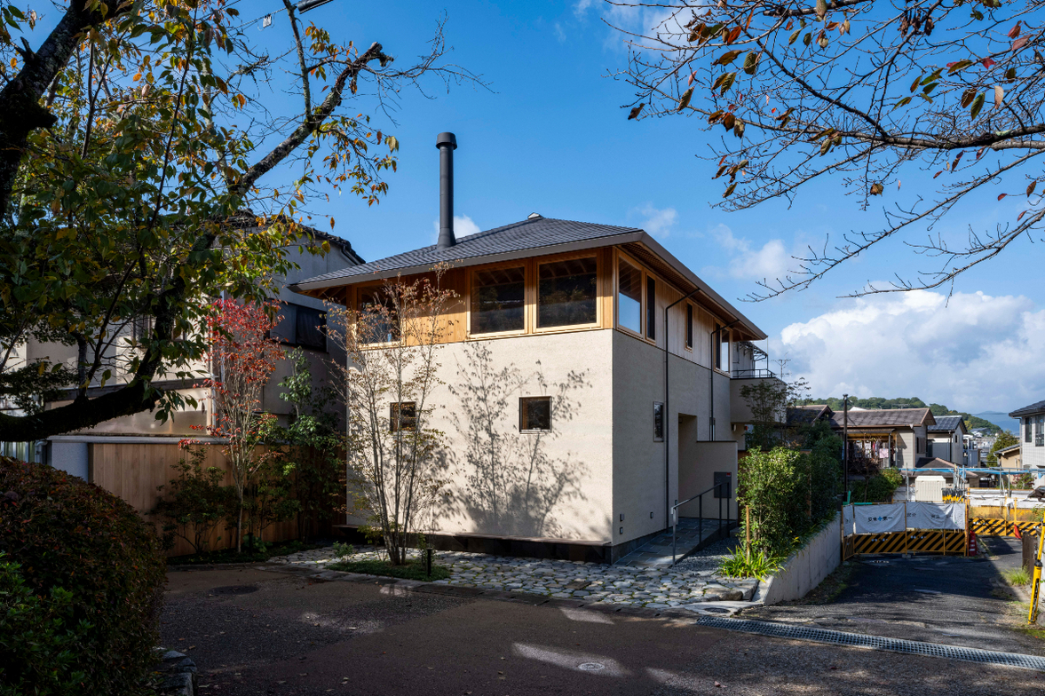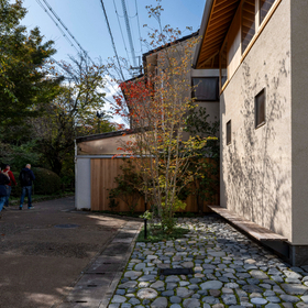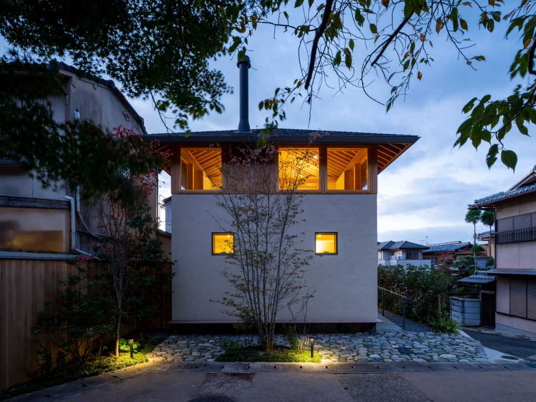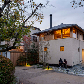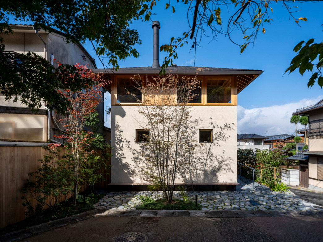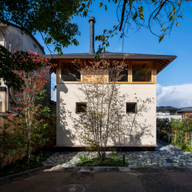 作品一覧京都東山の琵琶湖疎水沿いに建つ小さな家。前面道路は桜の名所で観光客が多いことから、敷地の一部を腰掛がある石畳の小公園として開放した。プライバシイを確保するために2階に居間、食堂、台所を設け、ダイニングテラスからは疎水と反対側の景色も望めるようにしている。2階は寄せ棟の小屋組を現わしとすることで、ひとつ屋根の下で暮らせる安心感がもたらされるように計画した。