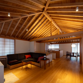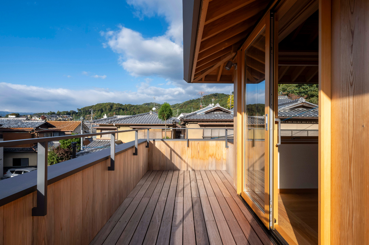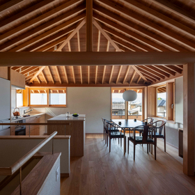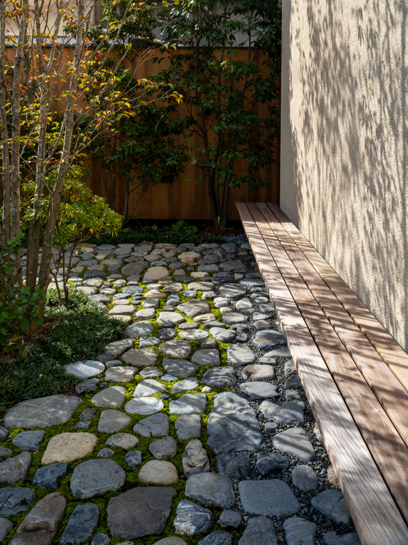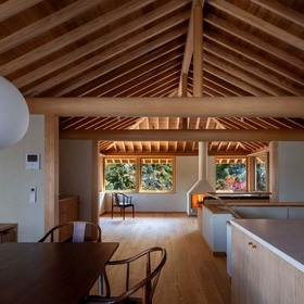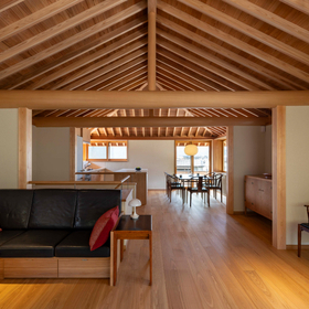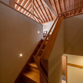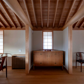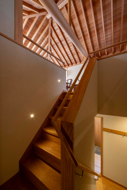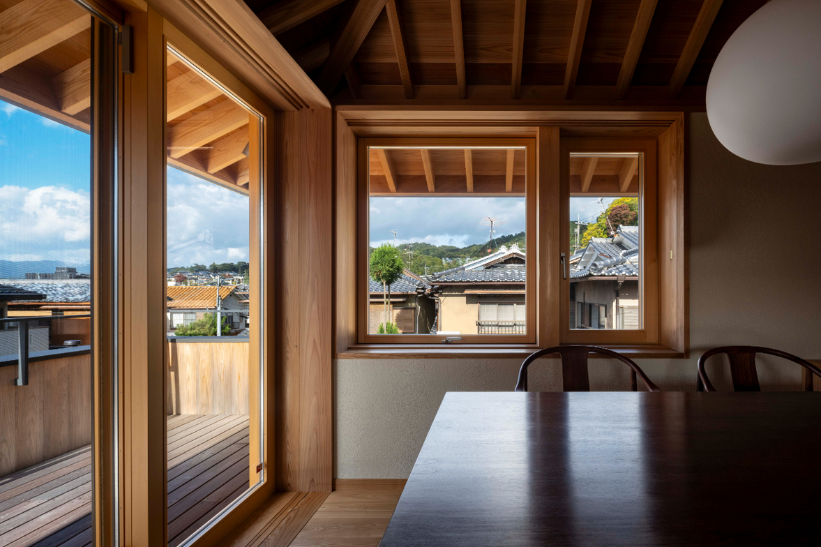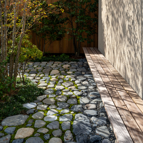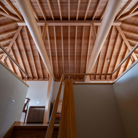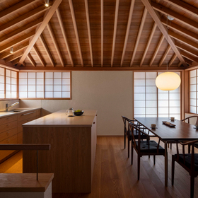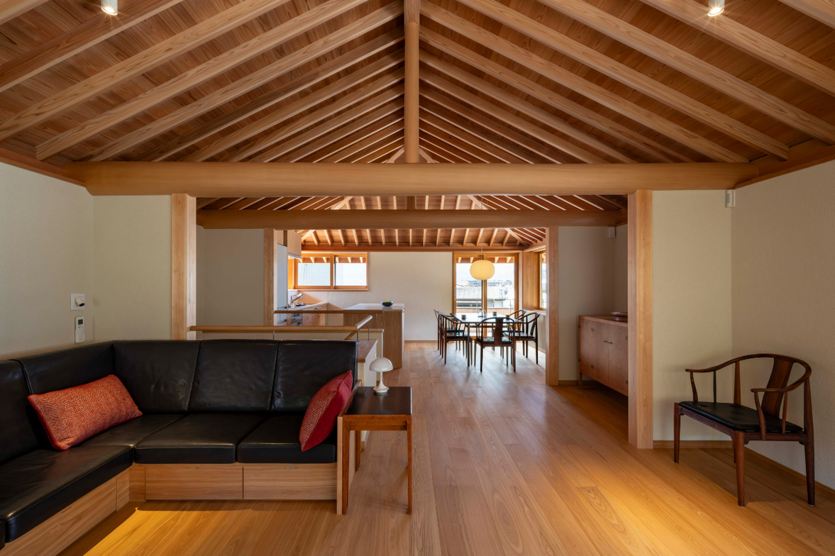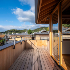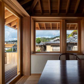 作品一覧京都東山の琵琶湖疎水沿いに建つ小さな家。前面道路は桜の名所で観光客が多いことから、敷地の一部を腰掛がある石畳の小公園として開放した。プライバシイを確保するために2階に居間、食堂、台所を設け、ダイニングテラスからは疎水と反対側の景色も望めるようにしている。2階は寄せ棟の小屋組を現わしとすることで、ひとつ屋根の下で暮らせる安心感がもたらされるように計画した。