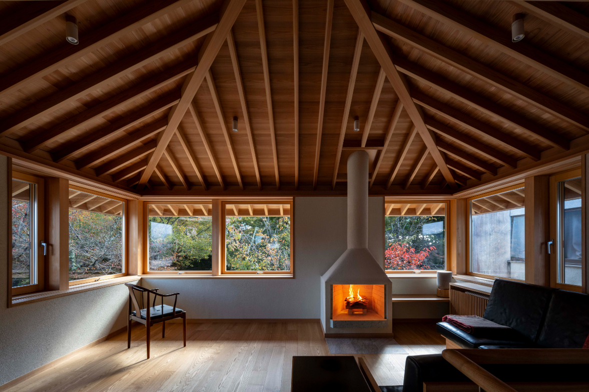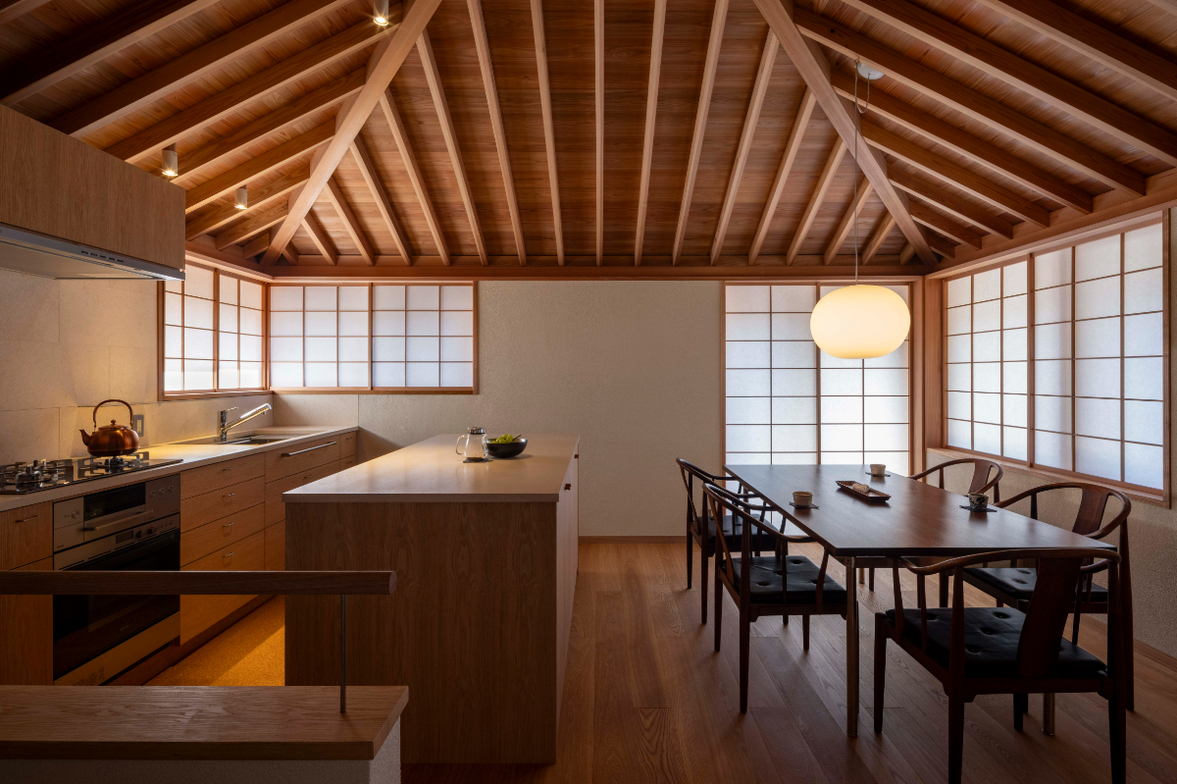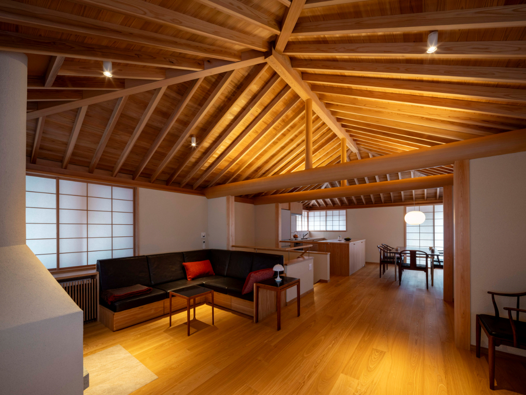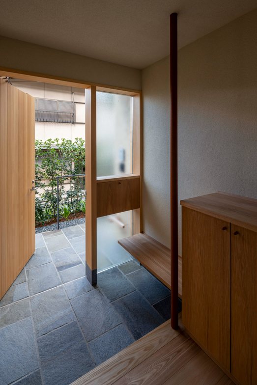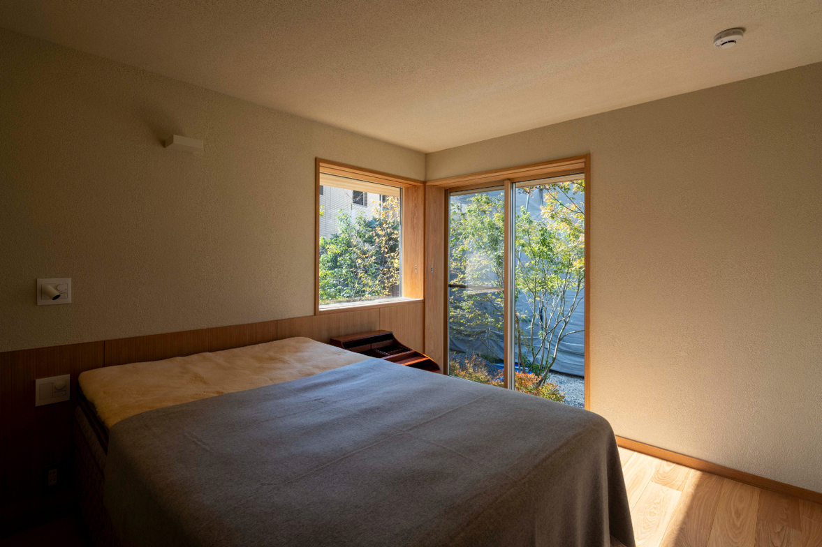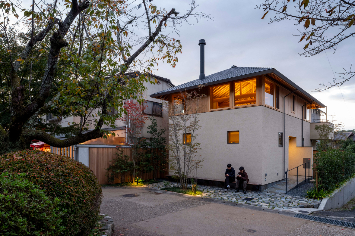 作品一覧京都東山の琵琶湖疎水沿いに建つ小さな家。前面道路は桜の名所で観光客が多いことから、敷地の一部を腰掛がある石畳の小公園として開放した。プライバシイを確保するために2階に居間、食堂、台所を設け、ダイニングテラスからは疎水と反対側の景色も望めるようにしている。2階は寄せ棟の小屋組を現わしとすることで、ひとつ屋根の下で暮らせる安心感がもたらされるように計画した。