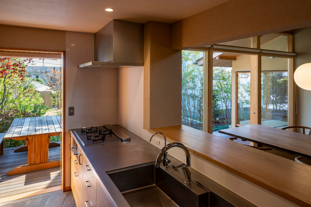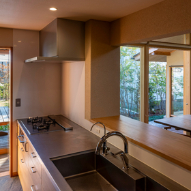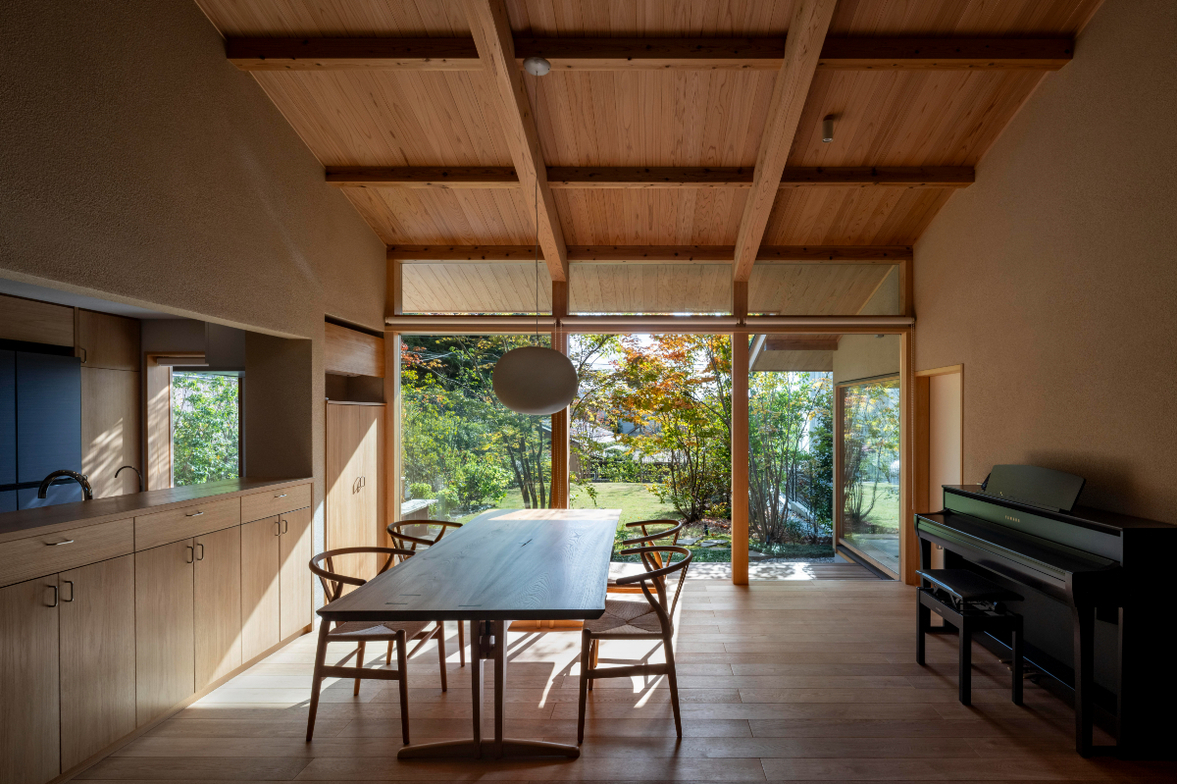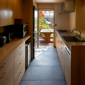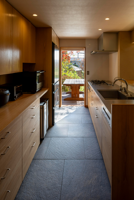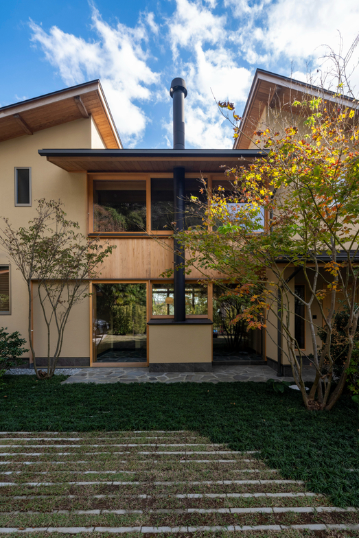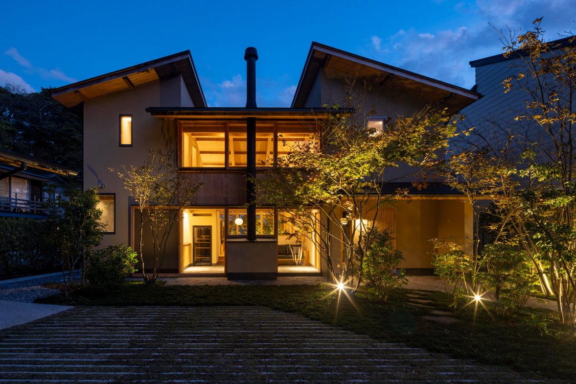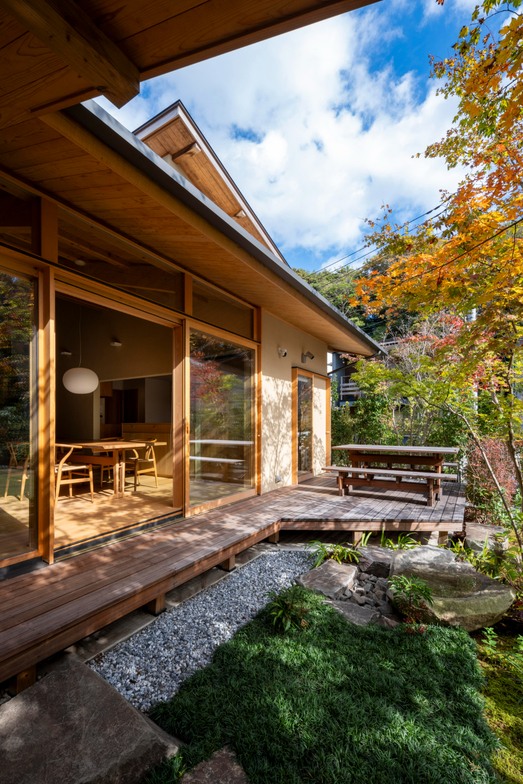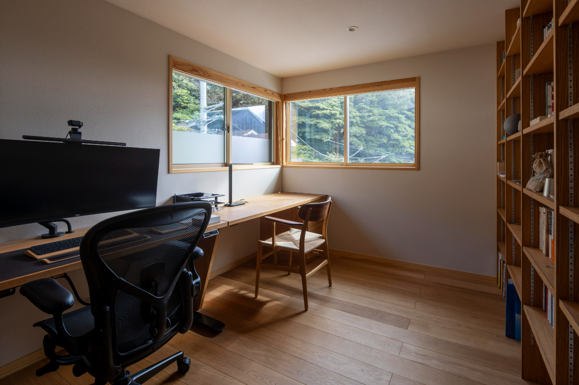 鎌倉駅から徒歩で15分程度の住宅地にある夫婦と3人の子ども達の家。