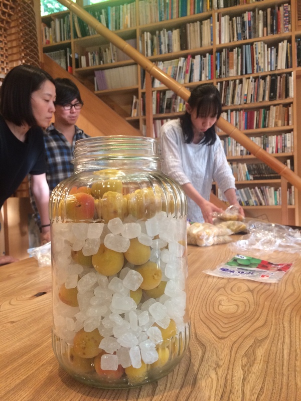 いただいた梅を凍らせて氷砂糖と層にして重ね、梅のエキスを抽出します。