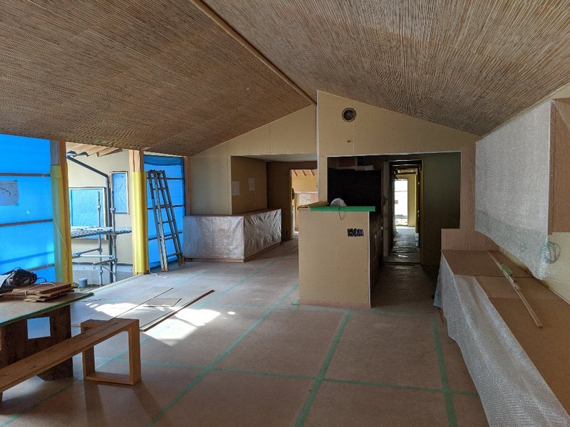造作家具も徐々に取付き始め、これからは内装の左官を塗っていきます。