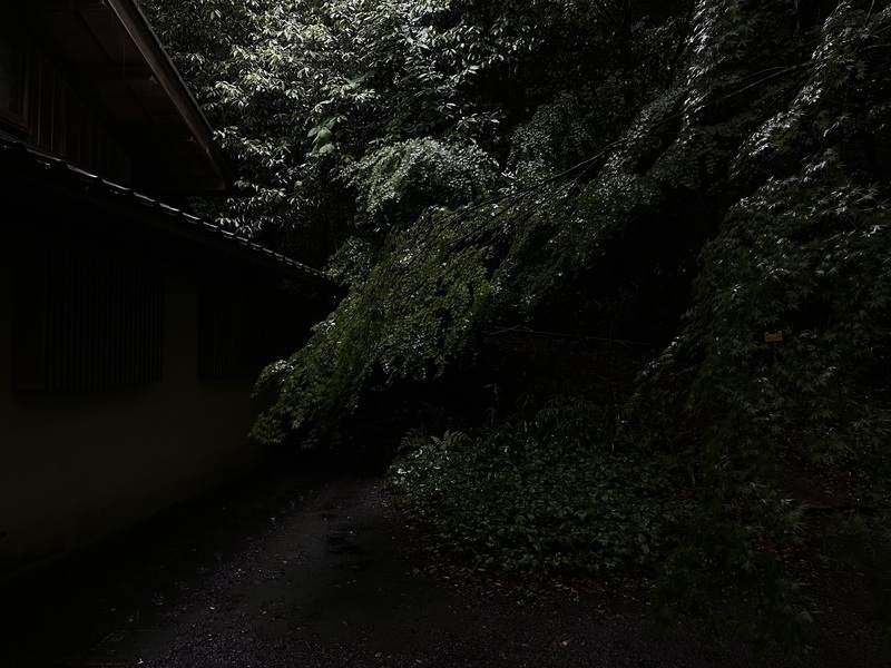 軒の上までかかる枝葉は、若王子の生態系の豊かさを包括しているかのようです。