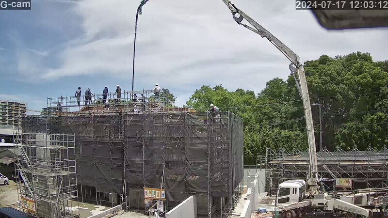 スラブコンクリートが打たれ、3階の壁の型枠が建て込まれています。
