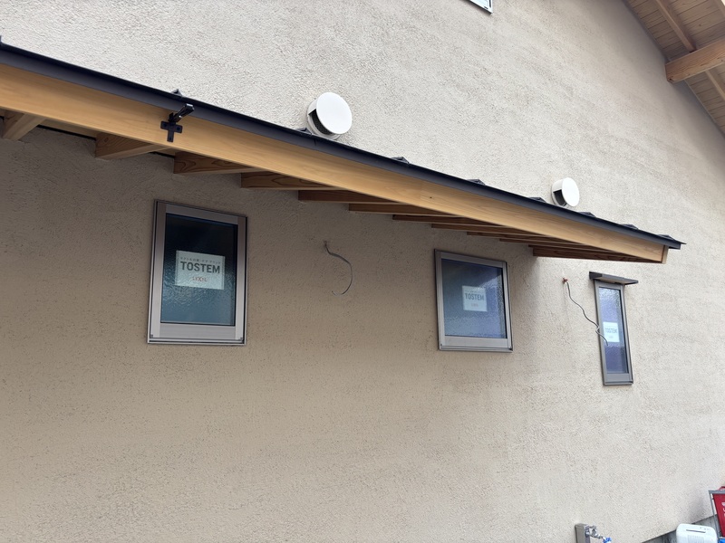 写真は雨どいが付く前ですが、雨どいもブラウン。