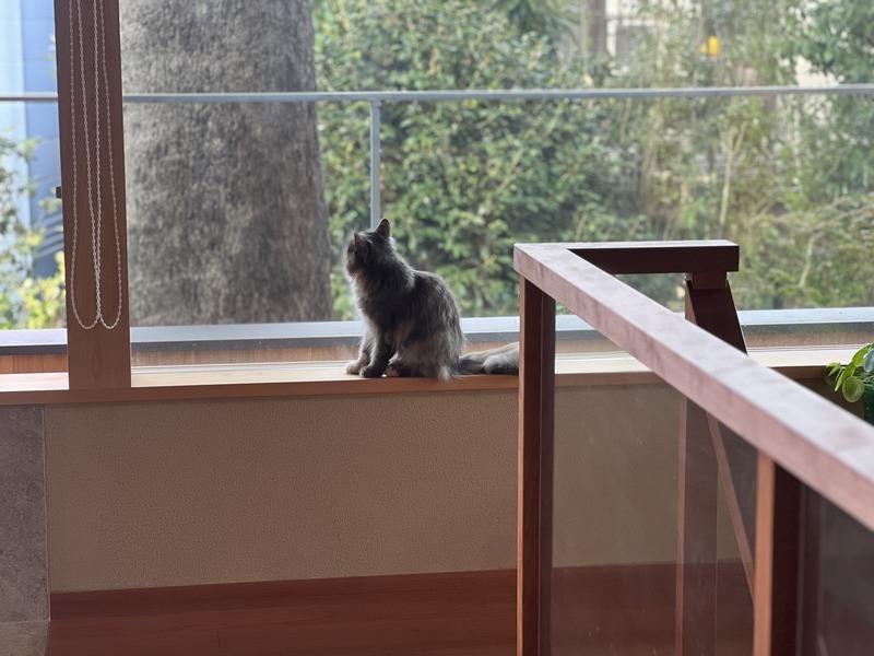 ワンちゃんと猫ちゃんがカメラの画角にチラリチラリ
