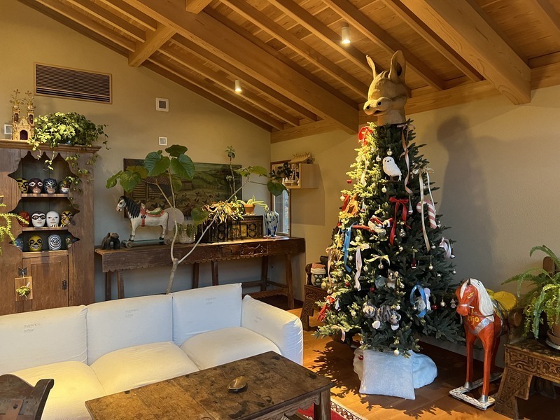 室内に入った瞬間、目の前にお部屋の中の大きなクリスマスツリーが!