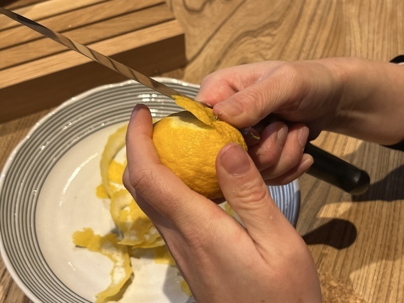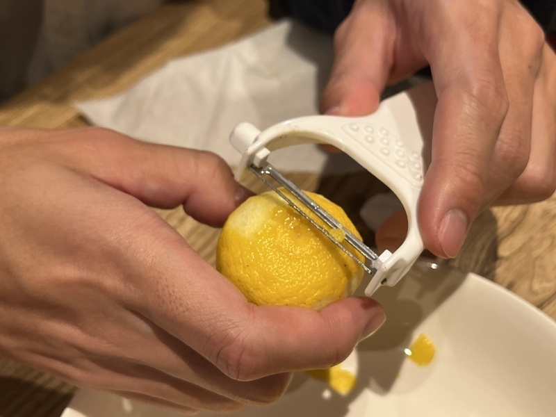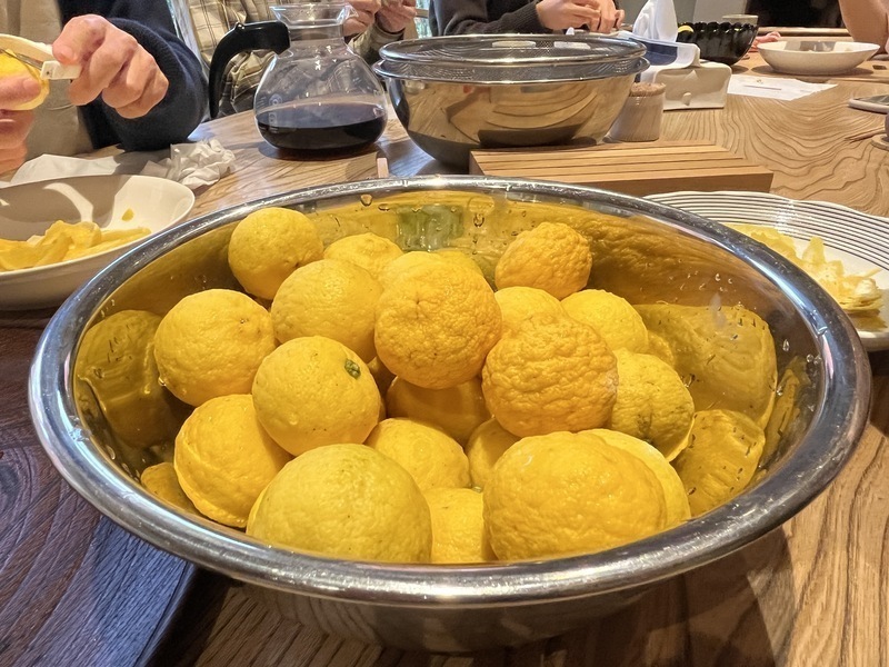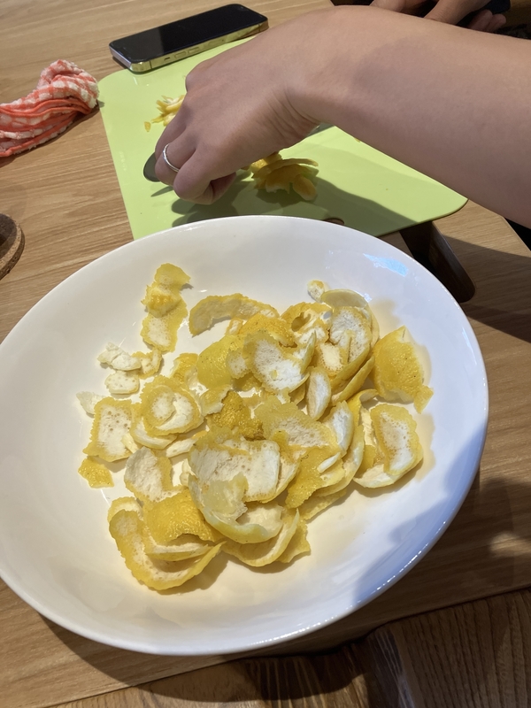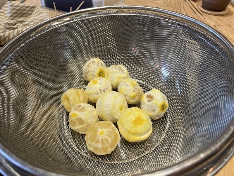 実と皮の間の白い部分からはえぐみが出るそうで、できるだけ薄くそいでいきます。
