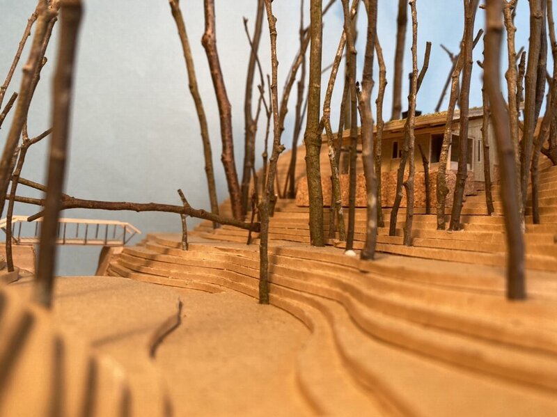 小さな川が流れる森の中に小さなゲストルームを計画しています。