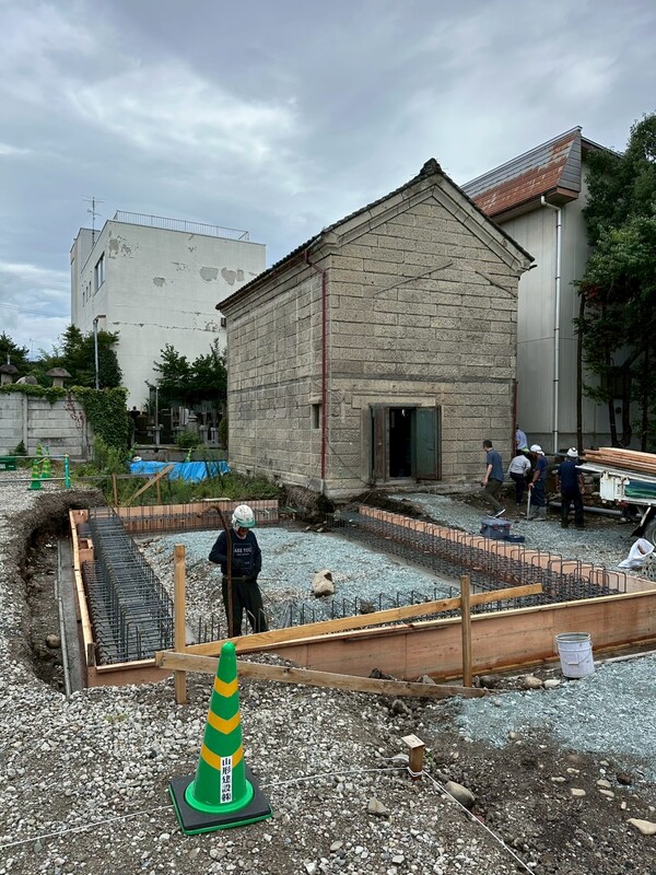 蔵の方にも基礎石の下に鉄骨を設置します。