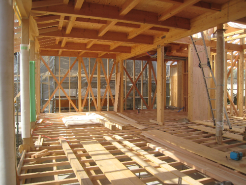 先日の現場では、内部に筋交い、構造金物が取り付きました。